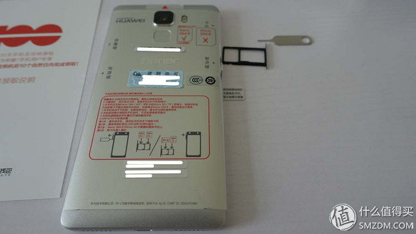 突出的摄像头一枚,下面是指纹识别区。电源键对面就是传说中的志玲键。所谓的志玲键其实就是个自定义按键。另外,别家手机的外壳上基本都有螺丝孔,但是荣耀7的铝壳很有意思,螺丝藏在卡托里,外表没有任何螺丝孔。