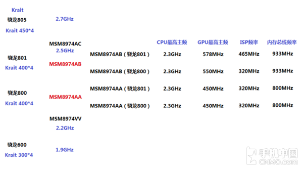 骁龙800和骁龙801各个版本区别