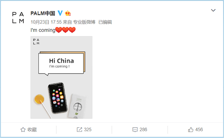 10月24日信息,昨天晚上,Palm中国发布第一条新浪微博,宣布官方宣布3.3英寸小屏安卓手机,将在我国宣布发布这款型号。这款mini型Palm安卓机,于上年十月,由TCL与营运商Verizon协作发布。