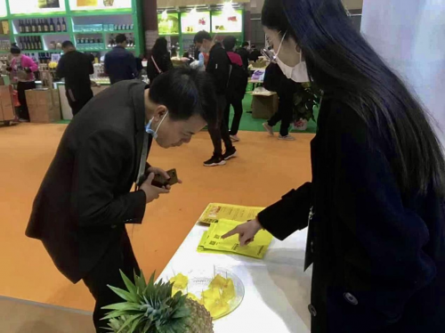 展会中的来自全国的客商都对金菠萝产生了很大的兴趣,在品尝金菠萝后,纷纷表示了合作意愿,都表达了想要大量采购或者进一步洽谈合作的想法。